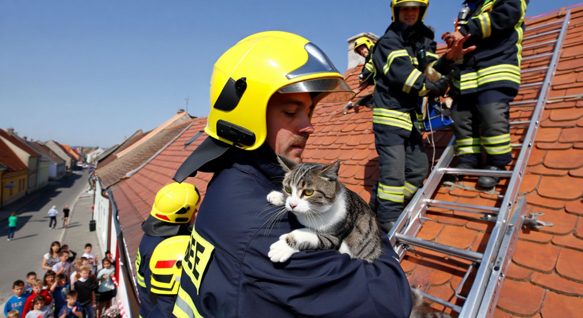 Pár feszült perc után megtört a dermedtség: a cica egy félmétert araszolt, majd engedte, hogy finoman beemeljék. Az utca ekkor felrobbant az örömtől. „Végre lejött!” – kiáltotta egy kisfiú, és a környék gyerekei tényleg tapsoltak, mintha egy hős tért volna vissza a magasból.