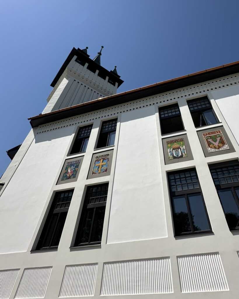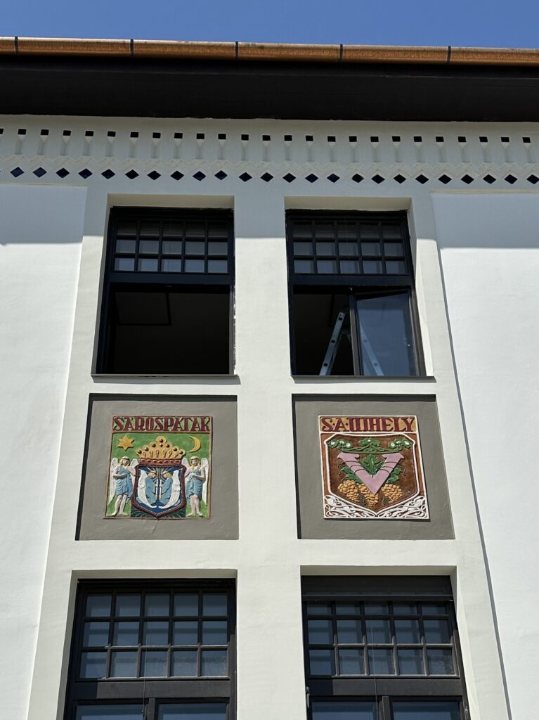 Maga az épület is gazdag jelentéstartalommal: a homlokzatot Zsolnay kerámia mozaikok díszítik, amelyeken a régió identitásának büszke jelképeként a Tokaj–Hegyalja borvárosok címerei láthatók.