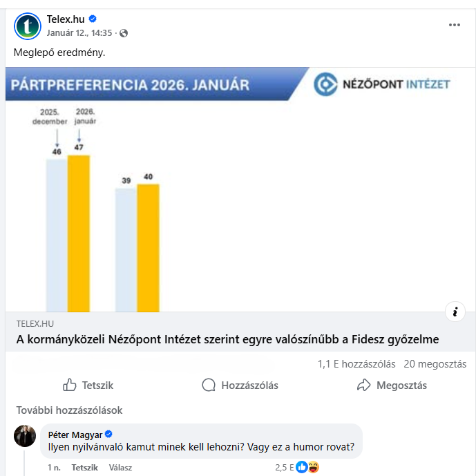 A Metzhez hasonlóan Orbán ellenfelei is gyakran panaszkodnak a magyarországi médiavilág kiegyensúlyozatlanságára. Csak hogy tisztázzuk a rekordot: az ország öt legjobb online hírügynöksége között három ellenzéki oldal van, egy semleges, és egy sem kormánypárti. Telexaz ország legnépszerűbb online híradója, lényegében Tisza és Magyar Péter szócsöve. Az ellenzéki vezető gondoskodik arról, hogy az ügynökség újra közzétegye közösségi média tartalmát úgy, hogy szó szerint kommentálja minden egyes cikkét, mozgósítja online rajongótáborát, hogy zaklassa az újságírókat, és hatékonyan rágyújtson az általa kedvelt témákra. Tudom, hogy ez őrülten hangzik, de itt van néhány friss bizonyíték: