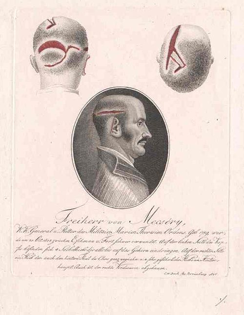 Két évszázaddal később egy másik, ugyanilyen vitéz huszár, Mecséry Dániel (1759–1823) kapott valódi elismerést a csatatéren elszenvedett sebeiért.(3) Beceneve, „a legkeményebb magyar” nem véletlen, hiszen a Habsburg hadseregben eltöltött 46 éves szolgálata alatt több,14 sebesülést is elszenvedhetett. végzetes. Fiatalkorában jogot tanult, de inkább a csatateret választotta. A tehetséges fiatal huszártiszt gyorsan emelkedett a ranglétrán, és 1798-ban már ezredesként részt vett a napóleoni háborúkban. 1805. október 20-án a németországi Eschenauban (ma Eckental), Nürnberg közelében a franciák körülvették és megtámadták az osztrák lovasságot és tüzérséget. Kis létszámú hadereje élén Mecséry megütközött a császári-királyi hadsereget jelentősen felülmúló ellenséggel. Egységei súlyos veszteségeket szenvedtek, de sikerült menekülési útvonalat biztosítania a császári hadtest számára.