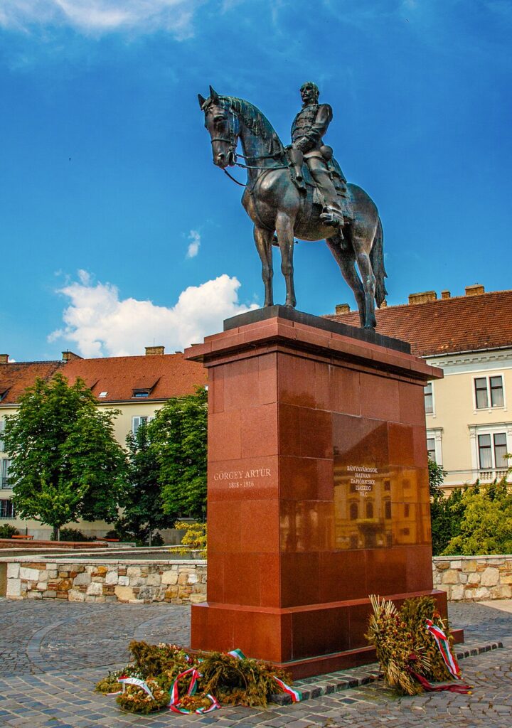 Harmadik hősünk, Görgei (vagy Görgey) Artúr (1818–1916) sérülését élettörténete, figyelemreméltó pályafutása, majd bukása árnyékolta be.(4) Az 1848–49-es Habsburg-ellenes forradalom idején több alkalommal szolgált a Magyar Honvédség tábornokaként, parancsnokaként. 1832-ben kadétként csatlakozott a császári és királyi hadsereghez, ahol főhadnagyi diplomát szerzett, majd a prágai egyetemen kémiából doktorált. 1848 júniusában csatlakozott a Magyar Honvédséghez, ahol páratlan katonai tehetségének köszönhetően gyorsan emelkedett a ranglétrán. 1849 áprilisában Kossuth, az ország kormányzója felajánlotta neki a hadügyminiszteri posztot. Május 4. és 21. között Görgei csapatai ostrom alá vették és elfoglalták Buda várát, visszafoglalva az ország fővárosát. Július 2-án azonban Görgei súlyosan megsebesült a komáromi csatában. Maga a csata élete egyik kiemelkedő eredménye volt: a támadó ellenséges sereg túlerőben lévő erőivel minden ponton visszaverte őket. Egy orosz ágyúgolyó töredéke azonban 12 centiméteres lyukat szakított a fejbőrében, és több helyen átfúrta a koponyáját. Sérülése miatt napokig lebegett élet és halál között, de végül a teste győzött. A sérülését követő 9. napon Görgei három hadtesttel Komáromból Arad felé indult; 13. napon Vácot elfoglalta, kiűzve az orosz előőrsöket. Kossuth sérülésére hivatkozva eltávolította a főparancsnokságról, de katonái mellette álltak. Ekkor hajtotta végre legmerészebb hadműveletét: Komáromból Aradra vonulva meggátolta az orosz és osztrák főerők egyesülését, annak ellenére, hogy óriási esélyekkel kellett szembenéznie.