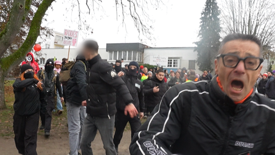 A csapat Tichys Einblickegy konzervatív német hírügynökség, a DGB közelébe került (Deutscher Gewerkschaftsbund). Néhány pillanattal később álarcos agitátorok vették körül a csapatot, miközben megpróbálták dokumentálni azokat, akik forgatták őket. Az eszkalációt videón rögzítették, beleértve azt a pillanatot is, amikor az egyik támadó ököllel arcon vágja az operatőrt.