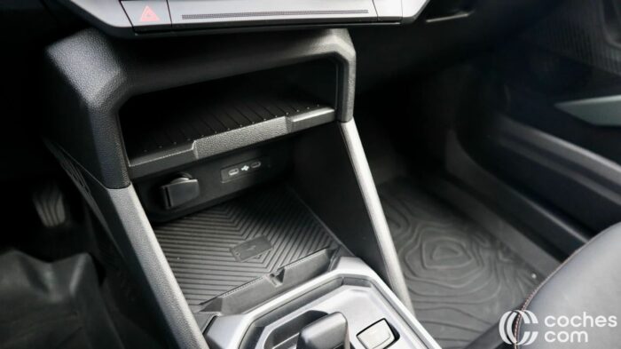 Használó? Nincs túl sok a szélesség, tehát a három meglehetősen szoros lesz, és a központi utasnak egy kissé magas központi alagútnal kell foglalkoznia. Az elülső biztonsági mentésekben nem hiányzik a zsebek, és a konzol végén találunk helyet a dolgok elhagyására, két USB-C lövés és egy klip, ahol hagyhatunk állványt … mert nincs támogatási-gyapjú valami ebben a szegmensben vagy közvetlen hozzáférésben.
