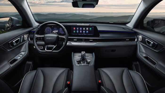 Mint sok más jelenlegi autóban, az EBRO S700 elkötelezett a minimalizmus mellett a kabinjában. A felső rész fenntartva van Két 12,3 hüvelykes képernyő amelyek ugyanabban a keretben csatlakoznak, amely ívelt felületet képez. A bal oldalon nem tapintható, hanem egy digitális műszer, amelynek információkat a kormánykerék érintőképernyőjén keresztül módosíthatják.