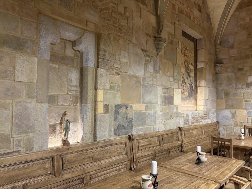 Hordósoraik mellett található egy terem, ahol a borkóstolók a mezőgazdasági harmónia allegóriája közepette kortyolgathatják a különféle borokat, mellette a lourdes-i Szűzanya szobra és az ördögöt sárkány alakban megölő Szent Mihály arkangyal freskója.
