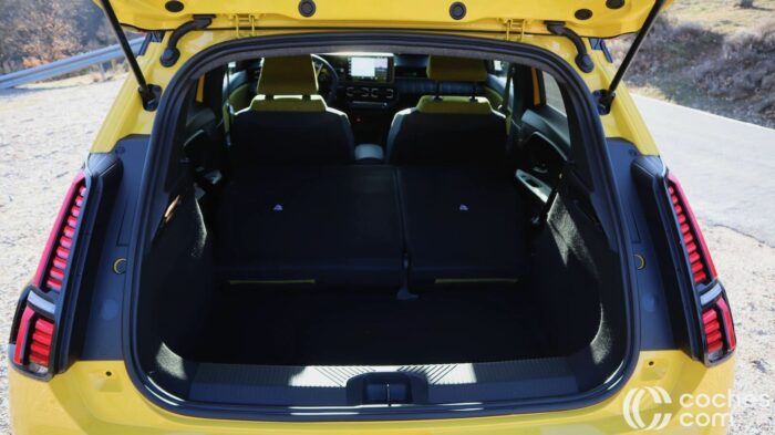 Ha több helyre van szüksége, a Renault 5 lehetővé teszi, hogy a hátsó üléseket 60: 40 -es konfigurációban hajtsa össze, kibővítve a kapacitást 1100 liter– Természetesen az ülések összehajtásakor van egy meglehetősen kifejezett lépés, amely megnehezítheti a nagyon hosszú tárgyak hordozását.