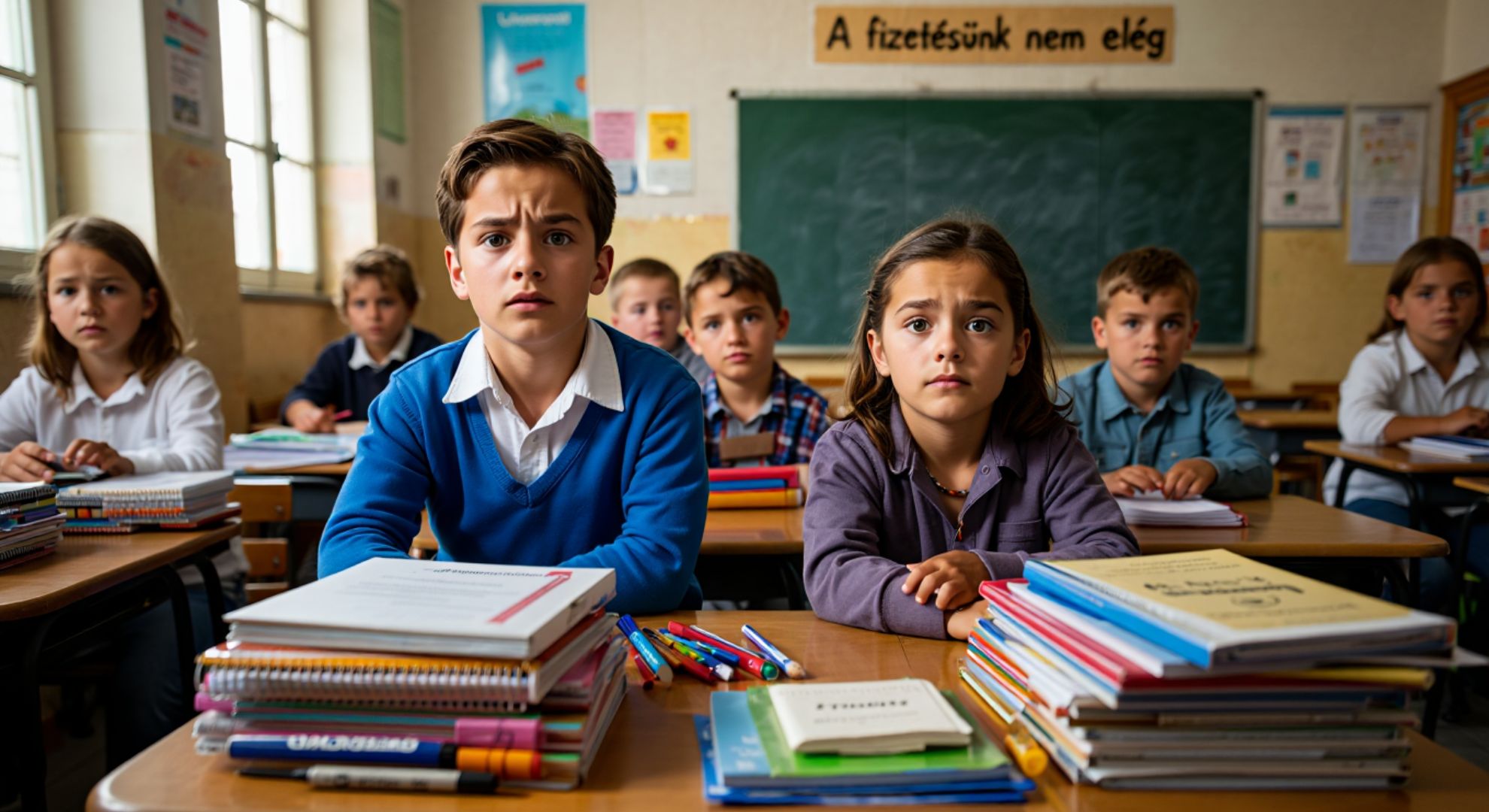 „Egyszerűen nem elég a fizetés a hónap végéig, és mégis azt érzem, a gyerekek előtt nem mondhatom azt, hogy ma nincs papír” – mondja Katalin, budapesti alsós tanító. „Ha nem veszem meg a markereket, a következő érettségi-felkészítőn félkarú óriás leszek” – teszi hozzá Ádám, vidéki középiskolai tanár.