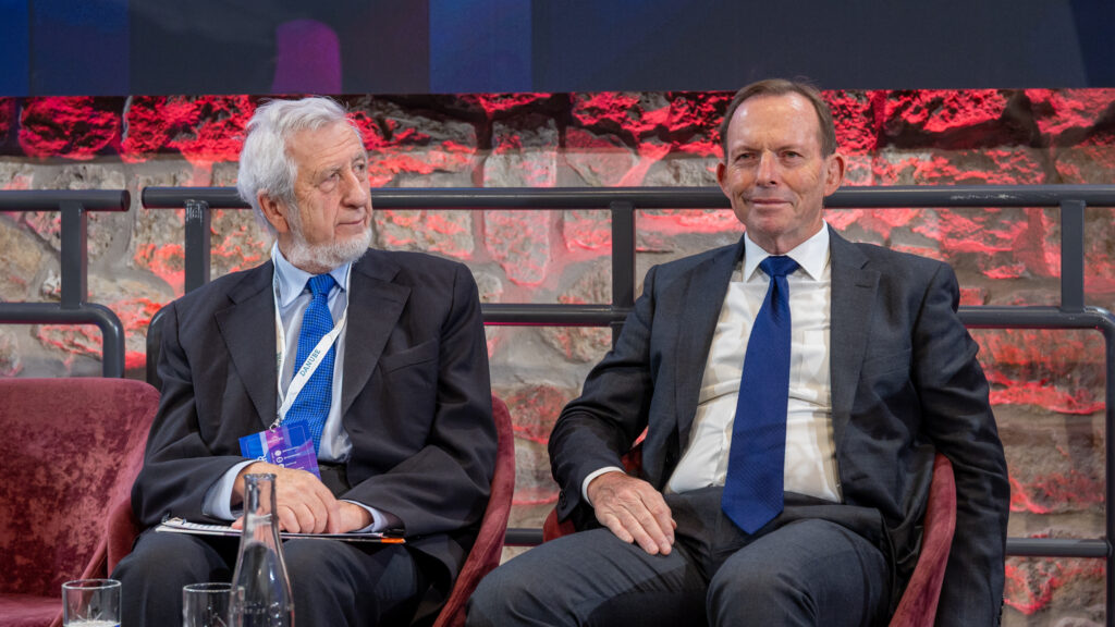 Abbott miniszterelnök felsorolta a Nyugatot, amikor Thatcher miniszterelnök hivatalba lépett: az 1973. évi olajválság által előidézett hosszú „stagfláció”, és többek között az Egyesült Államok vesztesége a vietnami háborúban. Alig egy évtized alatt azonban Thatchernek és Reagan elnöknek sikerült megfordítania a dolgokat, kiemelte a hangszóró. Most úgy döntött, hogy a geopolitika állapota egy „második hidegháborúra” hasonlít még nagyobb fenyegetésekkel, például egy kínai első osztályú gazdasággal, és gyorsan javítja a katonaságot, a szétaprózott amerikai társadalmat és egy Európát, amelyet a tömeges vándorlás és a zöld napirend gyengíti. Jelenleg panaszkodott a „Vezetők hiánya egyértelmű tervvel” nyugaton. Miközben Donald Trump amerikai elnököt karizmatikus vezetőként elismeri, elítéli kijelentéseit is, amelyek elidegenítették Kanadát és Indiát az Egyesült Államokból.