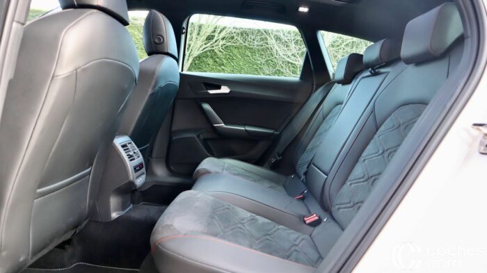 A többi számára kiváló első ülések, elektromos beállításokkal és jó kárpitokkal … és nagyon jó négyzetek a hátsó utasok számára, 74 cm lábtérrel, kiváló figurával.