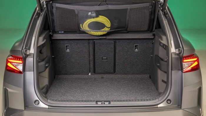 Skoda Elroq csomagtartójának van a 470 liter kapacitás és a szegmens egyik legjobbjaként posztulál. Ezenkívül nagyon használható részletekkel rendelkezik, például az oldalsó lyukakkal, amelyek 48 liter vagy összecsukható horgot adnak a csomagtartó mindkét oldalán. Mintha ez nem lenne elég, nem láthattunk más elektromos anyagokat, és ez a hálózat a tálca alatt hogy kiszolgálja hogy hagyja el a rakománykábeleket, és ne foglalja el.