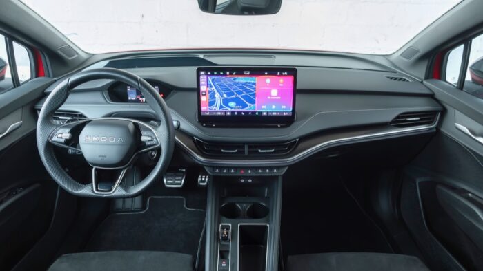 A Skoda Elroq kabinban tiszta mintát és a Példaértékű ellátás az anyagokért– Nagyon jó minőségű szintet érünk el, még az újrahasznosított műanyagokkal készült szövetekkel is, amelyek jó számú felületet fednek le. Kiemelkedő érintéssel rendelkezik, és úgy tűnik, hogy tartóssága rajta lesz. Ezenkívül az építkezés szilárd, és látjuk AGO MAPAPLEBLE Hollowsakár 48 liter hozzáadása. Nem szabad elfelejtenünk, hogy a cseh márka számára a praktikusság kötelező.