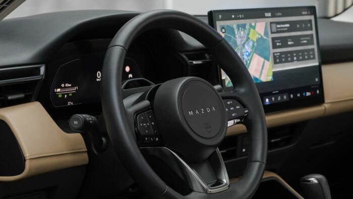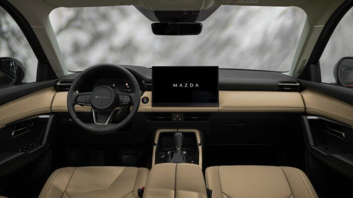Mindig dicsértük, hogy a Mazda a fizikai ellenőrzésekről és a kontrollok jó hajlandóságáról, kiváló ergonómiával fogadott. Most minden a képernyőre koncentrálódik. 12,9 hüvelykes sorozat (15,6 hüvelyk a magasabb befejezésben).