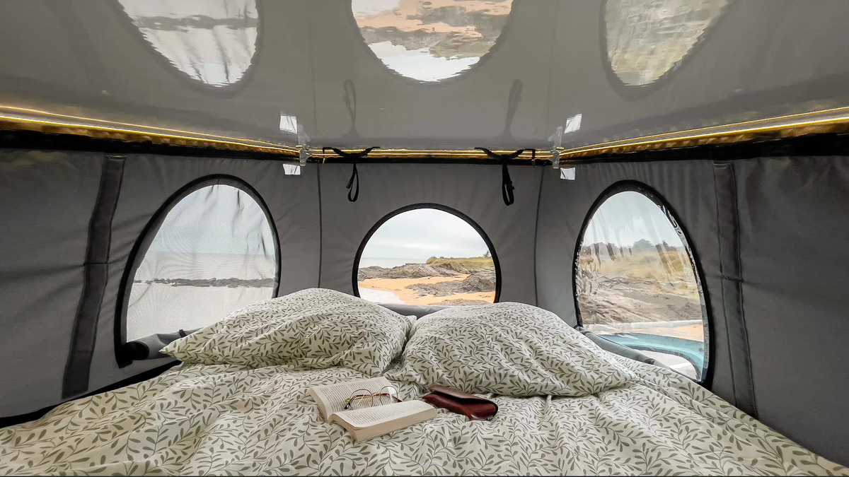 A modell nagy erőssége, hogy négy fekhelyet ad alapáron, így rögtön kész a családi kaland. Hátul a kétszemélyes Smart Bed rendszerrel alakítható ki az ágy, amely 125 cm széles és 185 cm hosszú, kényelmes két utasnak. Felül a felnyitható tető 140 × 195 cm-es, rugalmas tányérrácsos ágyráccsal és remek szellőzéssel szolgál. A két zóna elkülönülten használható, így a gyerekek pihenhetnek fent, míg a szülők lent olvasnak vagy filmet néznek.